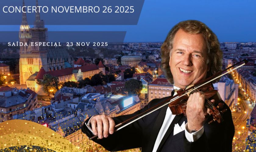 Notas: Os Bilhetes do Concerto de André Rieu, que se celebrará em Zagreb na Quarta-feira dia 26.11.25 às 07:30 PM NÃO SÃO REEMBOLSÁVEIS, caso os passageiros decidam Cancelar o Tour. Isto signifca que o custo do ingresso, se Cancelado o Tour por decisão dos passageiros, terá MULTA TOTAL.
